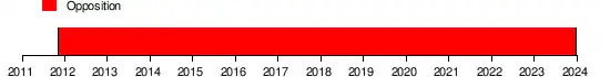 Year Leader Popular vote  % of popular vote # # of seats Seat change Coalition Status Ref.