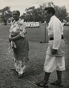 The Royal Tongan kava ceremony is still politically significant as it is the ritualized installation of the monarch of Tonga along with the chiefly nobility. The king and nobles are the traditional landholders and may hold government positions within Tongan constitutional monarchy as afforded them according to chiefly right.[30] Since the days of Tonga’s great unifier, Tupou I, the monarchs of Tonga have used the kava ceremony to continue to establish their political power and influence in the kingdom, arranging and rearranging traditional seating as well as holding grand kava ceremonies in which chiefs will pledge their loyalty.[26] During the investiture of Queen Sālote Tupou III at her Taumafa Kava, there were many of the high ranking chiefs who were not present as a form of political rebellion, however, years later the Queen, after much political maneuvering and hard work to attain loyalty from the great chiefs, a grand kava ceremony was held at which all chiefs from all the islands of the Tongan archipelago were expected to attend to show their allegiance and loyalty to Queen and country.[26] Strategic and contemporary Taumafa Kava performance since the days of Tupou I and his great-great-granddaughter, Queen Sālote, is in effect acts of defiance against the colonial forms of leadership acquisition and election. The choice to continually use the Taumafa Kava as the preferred form of installing the monarch and chiefs, is a form of indigenous agency and sovereignty performed by the native people themselves in spite of the many Papālangi, European, modes of governance as enacted in government.[31]