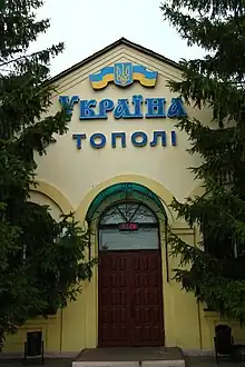 A railway line runs north through the village and across the border to Urazovo in Russia. Since June 24, 2017, there has been a border service point named after the town Topoli (border checkpoint), which was opened by Interior Minister Arsen Avakov and NSDC Secretary Oleksandr Turchynov.