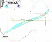 Path of the Binger, Oklahoma Tornado on May 22, 1981