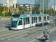Trambesòs is a light rail (tram) system, consisting of three routes that connect the district of Sant Martí in Barcelona to Badalona and Sant Adrià de Besòs municipalities. Its name comes from the union of the words "tram", an abbreviation of the Catalan word tramvia, and "Besòs", the name of an area in northern Barcelonès dominated by river Besòs.[5]