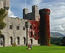 The Industrial Revolution and the slate quarries of Snowdonia helped provide George Hay Dawkins-Pennant with the wealth to construct, between 1822 and 1837, Penrhyn Castle in the Norman Romanesque style, a house that is more romantic and an expression of riches—as Hardwick Hall is—than scenic or comfortable, a house that is so well crafted and monumental, even if an unoriginal pastiche, that it has been accepted by the National Trust.[99]