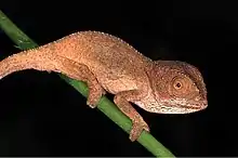 Wolfgang Böhme's Ethiopian chameleon (Trioceros wolfgangboehmei) is a species of chameleon found in the northern slopes of the Bale Mountains in Ethiopia.[1] It is a small-sized chameleon of the Trioceros affinis species complex. The chameleon is approximately 6 inches (15 centimeters) in length, and are known for their distinctive crest of large, spiny scales along its back. The species is named after Wolfgang Böhme, senior herpetologist at the Zoological Research Museum Alexander Koenig, to honor his contributions to chameleon research.