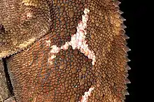 5. Area between lateral and temporal crest and the posterior rim of the orbit consists of wrinkled enlarged scales;