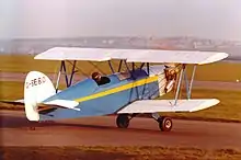 The Turner Two Seat Wot's structure is primarily of wood with metal interplane struts, cabane struts, undercarriage and engine mount. Two examples were constructed: G-BEBO and G-BLPB.[1] The prototype G-BEBO was fitted with a 125 hp (93 kW) Lycoming O-290-3 engine and G-BLPB a 150 hp (112 kW) Lycoming 0-320-A1A engine.[2][3]
