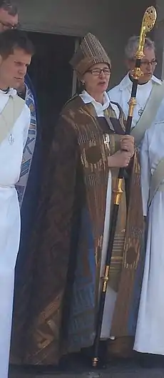 In 1973, she became the principal diocesan curate in Lund, gaining a similar position in Växjö the following year. She served as a deputy pastor in Bro Parish, Upplands-Bro, in the Diocese of Uppsala, from 1976. In 1983 she became a student pastor at Uppsala University, and in 1987 an assistant pastor at Uppsala Cathedral and parish priest for the Almtuna district. She was appointed Dean of Uppsala Cathedral in 1995 before becoming Bishop of Härnösand in 2009.[1] The consecration ceremony took place in Uppsala Cathedral. At the same occasion, Eva Brunne was consecrated Bishop of Stockholm.
