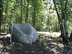 The two large rocks were inscribed with the year 1638 and the names Dudley and Winthrop by a descendant of Dudley's named Dudley Leavitt Pickman,[3] as noted in the Bedford Town Report in 1889.[4]