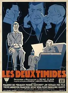 Two Timid Souls (French: Les Deux Timides) is a 1928 French silent film comedy directed by René Clair, and based on the 1860 play Les Deux Timides by Eugène Labiche.[1][2][3][4][5] It was made by the Films Albatros production company.[6] The sets were designed by the art director Lazare Meerson.