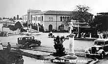 The custom house was designed by architect and Office of the Supervising Architect of the Treasury inspector Albert B. Nichols, who also designed the custom houses of Fajardo and Ponce. It was built between 1924 and 1931 at the site of a smaller 18th-century custom house, at a critical location that used to function as the central business district of San Juan during the late 18th and early 19th centuries, and the site of the main port of Puerto Rico (today the main cruise ship port section of Old San Juan) before the construction of the new port (Puerto Nuevo) located along the southern edge of the Bay of San Juan.[3] The Colonial Revival design was chosen to preserve the Spanish Colonial character of the area, as it incorporates architectural elements of the former Spanish custom house but also many of the Renaissance and Neo-Gothic elements popular in Spanish architecture of the time.[4] The former Spanish custom house, which also housed a smaller warehouse and post office, was demolished at an unknown date during the first decade of the 20th century. This was done as a territory-wide project to enlarge and upgrade the governmental properties in Puerto Rico during the early 20th century. Construction was made by the Philadelphia-based Richmond and Kemp Ornamental Iron and Bronze and by the North American Wood Products Company of New York City. It was primarily used as a custom and additionally as a warehouse by the American Customs Service in Puerto Rico until the end of World War I. Additional modifications were made in 1957 and 1959 by the U.S. Army Corps of Engineers while air conditioning was installed by 1960.[2] The building is still owned and managed by the U.S. Customs Service.[5]
