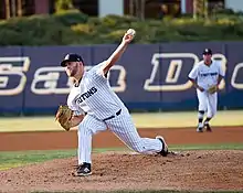 The UC San Diego baseball team plays its home games at Triton Ballpark in La Jolla, which was renovated in 2014.[4] In 2005, the Tritons were the CCAA league champions. In 2007 and 2008, they reached the NCAA West Regionals. In 2009, after winning the CCAA league and CCAA tournament, they advanced to the NCAA Division II College World Series under the leadership of coach Dan O'Brien and infielder Vance Albitz, where they placed fourth. In 2010, they were the College World Series runners-up and the CCAA league and tournament champions. In 2011 and 2012, they repeated as CCAA league and tournament champions, again reaching the NCAA West Regionals. They won the CCAA tournament in 2014 as well.[5] In 2017, they were CCAA tournament runners-up and NCAA West Region champions, and placed second in the College World Series.[6]