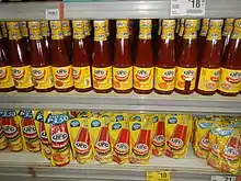 Banana ketchup was deemed a cheaper alternative than tomato ketchup since bananas were abundant in the Philippines.[1] Philippine food technologist Maria Y. Orosa (1893–1945) is credited with inventing the banana ketchup recipe.[2][3][4]
