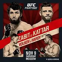 UFC Fight Night: Magomedsharipov vs. Kattar (also known as UFC Fight Night: Zabit vs. Kattar, UFC Fight Night 163 and UFC on ESPN+ 21) was a mixed martial arts event produced by the Ultimate Fighting Championship that took place on November 9, 2019 at CSKA Arena in Moscow, Russia.[2][3]