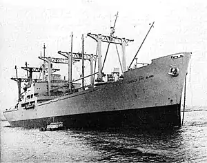 In 1957, Schuyler Otis Bland was acquired by the US Navy for operation by American Mail Lines.[1] The American Mail Line had acquired her to replace the SS Washington Mail, which had foundered in a violent North Pacific storm.[2] In October 1959, after more than two years with American Mail, she entered the National Defense Reserve Fleet at Olympia, Wash.[2]