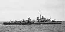 Vogelgesang was decommissioned and stricken from the Naval Vessel Register on 24 February 1982, transferred to Mexico and renamed Quetzalcoatl (E-03). In 1993, the ship had a single Bofors 57 mm gun mounted in "B" position, between the forward 5 inch mount and the ship's bridge.[1] Also during that year, the ship was renamed Ilhuicamina with the pennant number E-10,[2] although by 2002 the ship had reverted to the name Quetzalcoatl.[1] In 1994,[lower-alpha 1] the ASROC launcher and anti-submarine torpedo tubes were removed.[2] In 2001, the ship again changed Pennant number, to D 101.[1] She was decommissioned by the Mexican Navy in late 2002. On 24 November 2006, the ship was scuttled to form an artificial reef. Her main tripod mast is on display in Mexican Pacific Fleet headquarters, Mexico.