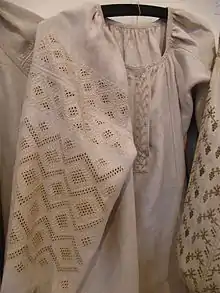 Folk embroidery was symbolic and connected with a great number of beliefs, myths, and superstitions, including beliefs regarding protection and fertility.[7] The lozenge shape is a common motif and represents a sown field and female fertility.[8]