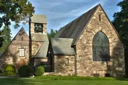 Union Church of Pocantico Hills is a historic church in Pocantico Hills, New York. The church was built by John D. Rockefeller Jr. in 1921, as part of his plans to develop the town of Pocantico Hills, which was below his estate Kykuit.[2] Upon the death of Rockefeller's wife Abby Aldrich Rockefeller in 1948, their son Nelson Rockefeller commissioned Henri Matisse to design the church's rose window in honor of her memory shortly before the artist's own death in 1954.[2] When John D. Rockefeller Jr. died in 1960, his children commissioned artist Marc Chagall to design a Good Samaritan window in his honor.[2] It is a one-story neo-Gothic style building with fieldstone foundation and walls and a slate covered, highly pitched gable roof. In 1930–1931, a parish hall was added to the east end of the church.[3]