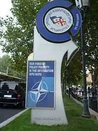 A pro-NATO sign edited by UNM, the then-ruling party of Georgia.