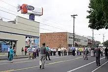 - ↑ KGW Staff (July 7, 2006). "104-foot giant hot dog displayed in Pioneer Square". KGW. Archived from the original on March 11, 2007. Retrieved May 2, 2008.