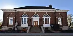 The former United States Post Office is a historic building located in Centerville, Iowa, United States. The Georgian Revival style structure was designed by the architectural section of the U.S. Treasury Department, which was under the supervision of James Knox Taylor at that time.[2] Completed in 1904, the main block of the building is five bays wide, and three deep. It has quoined corners, and it is capped with a hipped roof with a wooden modillion cornice and a narrow, decorative frieze. The roof originally had a cupola in the center and a balustrade. An addition was built onto the west side of the building in 1932, and an enclosed loading dock was added in 1951. The post office moved into a new facility on North Tenth Street in 1977. The building was listed on the National Register of Historic Places in 1978.[1] It was acquired in 1982 by the Appanoose County Historical Society for use as their museum.[3]