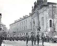 During World War I, the U.S. armed forces experienced a great influx of professional civilian musicians resulting, in part, from the mobilization of 27 African-American regiments to augment the U.S. Army's existing four Black regiments.[13] The regimental bands of these newly formed units were frequently led by Black blues and jazz musicians experienced performing in the clubs of New York and Chicago.[13] Among them was James Reese Europe, whose 369th Regiment band (the "Harlem Hellfighters Band") is credited with introducing jazz to Europe.[13] Regimental bands during this time varied greatly in size and quality and "intensive recruiting by an ambitious colonel with a band fund and an able conductor might coax a significant number of voluntary enlistments and result in a flexible, professional-quality ensemble."[13]