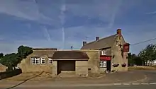In about 1400[3] or shortly thereafter[2] New College had a tithe barn built at Manor Farm in the village. Its plan is 120 feet (37 m) by 24 feet (7.3 m),[2] it is of nine bays and built of coursed rubble with ashlar quoins and buttresses.[3] The roof is of Stonesfield slate and has raised-cruck trusses.[4] The building has similarities with tithe barns at Swalcliffe[4] and Adderbury,[2] both of which were also built for New College early in the 15th century. It is a scheduled monument[5] and a Grade I listed building.[4]
