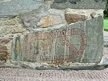 The Västergötland Runic Inscription 40 is a Viking Age runestone engraved in Old Norse with the Younger Futhark runic alphabet inserted into the wall of the church of Råda, in Lidköping Municipality, Västergötland, and the style of the runestone is possibly runestone style RAK.[1] It was made in memory of a man who fought and died in a battle between kings, "when kings fought each other". A similar phrase appears on the Danish mask stone.
