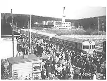 Before the completion of the Jyväskylä–Pieksämäki railway, people travelled from Vaajakoski to Jyväskylä by ferry, horse-drawn carriage and on foot.[4] The Vaajakoski railway station was opened in 1918. Bus services from Vaajakoski to Jyväskylä began in 1925. Ferry services were discontinued in 1928 due to the increasing popularity of trains and buses.[5]
