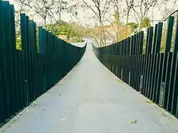 Finally, on the approach to the southern end of the park, is the Pont de la Unió, a viaduct inaugurated on February 19, 2010 in the presence of the then mayor, Pere Navarro i Morera. It is a footbridge that connects the Can Palet neighborhood with the so-called 20th century neighborhood, between Morella street and the Rubí road. It consists of a 107 m long frame and its name was chosen by the students of the schools President Salvans, Pau Vila, Andersen and Sagrat Cor de Jesús.[29]