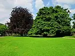 The park, one of the largest in Catalonia,[42] contains a great variety of plants and trees, among which the most important tree species are stone pines —29.2%—, plane trees —22.75%— and holm oaks —29.2%—. To a lesser extent, false asacias, mediterranean cypresses, olive and ash trees[43] can be found. Other species that can be found are poplars, blue gum, laurels, tulip trees, chrerry plum trees, maples or lodogno trees.[44] Regarding smaller varieties of plants, throughout the park you can appreciate honeysuckles, common ivy, purple morning glory, common barberries, rosemary, mock oranges or abelias.[44]