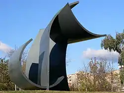 At the northern end of the park, next to the Parc del Nord, is located "Homage to Malevich" (in Catalan, Homenatge a Malèvitx). This sculpture is dedicated to Kazimir Malevich, a Russian painter, considered the creator of Suprematism.[34] It is a work of Jorge de Oteiza,[35] inaugurated on May 15, 1999. The piece had to be moved twice due to the urbanization of the so-called railwaymen's apartments and, later, for the construction of the Barcelona-Vallés line station. It weighs 26 tons and is made of zinc-coated metallized steel with a satin paint finish. The piece represents a test of a spatial rotation that Malevich called "Malevich's units".[36]