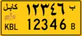 However, the 5-digit code in the capital province of Kabul exhausted. Thus, on the license plates of this province, have an additional extra digit, only in Persian, located separately from the actual numerical code. In addition, two hyphens are shown at the top and the bottom of the 6th number. [1]