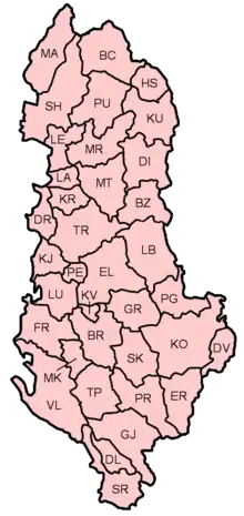 In Albania, vehicle registration plates are issued by the General Directory of Road Transport Services (Albanian: Drejtoria e Përgjithshme e Shërbimeve Të Transportit Rrugor, DPSHTRR).