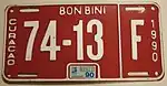 Current plates are North American standard 6 × 12 inches (152 × 300 mm).[1]