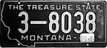 1953–54 | Embossed white serial on black plate with state-shaped border; "MONTANA–53" below serial | "THE TREASURE STATE" at top | 1-12345 10-1234 |