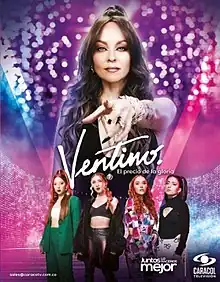 Ventino: El precio de la gloria (English: The Price of Glory, Ventino)[1] is a Colombian telenovela created by Jhonny Ortiz. It aired on Caracol Televisión from 1 March 2023 to 30 May 2023.[2] The series follows four singers who on their path to fame, will have to overcome several obstacles including their manager, who is willing to step over anyone who attempts to overshadow her.[3] It stars Natalia Afanador, Makis de Angulo, Camila Esguerra, Olga Lucía Vives and Carolina Gómez.[4]