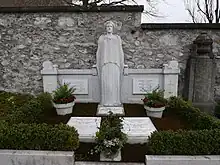 In 1918, both Hans and Simon died of the Spanish flu within a single week, after which she had to take over day-to-day management of the print shop once again.[77] Verena said she was motivated to continue working, so that her grandchildren could take over the family business someday.[71] One of her grandchildren, Hans Conzett, would later work at Conzett & Huber and go on to become a politician in the Swiss People's Party.[78] Verena Conzett died in Kilchberg on 14 November 1947,[3][9] and is buried at the cemetery of Kilchberg.[79]