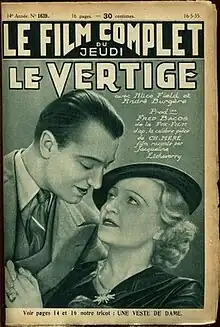 Vertigo (French: Le vertige) is a 1935 French drama film directed by Paul Schiller and starring Alice Field, André Burgère and Jean Toulout.[1] It is based on a 1922 play of the same title by Charles Méré, which had previously been made into the 1926 silent film Le Vertige directed by Marcel L'Herbier.[2] The film's sets were designed by the art director René Renoux. It was produced and distributed by the French subsidiary of Fox Film.