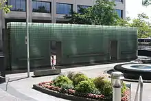 In 1982, plans were unveiled to redevelop Jeannette Park into a memorial for veterans of the Vietnam War.[6] The architects Peter Wormser and William Fellows and the writer Joseph Ferrandino won a competition to design it.[5] The Vietnam Veterans Memorial Commission raised private donations of $2.5 million ($1 million from Donald Trump, who served as co-chairman of the commission) to finance the memorial in 1983.[7][8] The park was officially renamed Vietnam Veterans Plaza on July 20, 1983.[9] The next year, it was announced that the plaza would contain a memorial wall, similar to that at the Vietnam Veterans Memorial but made of glass blocks.[10][11] It was dedicated on May 6, 1985, by then-mayor Edward I. Koch to honor the 1,741 citizens of the city who died during the Vietnam War and the 250,000 men and women who served between 1964 and 1975.[12]