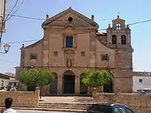 • Iglesia del Carmen, some years after the visit of Teresa of Ávila, the Discalced Carmelites Friars who were in La Roda came over here and founded a convent that now only remains this church. The building is a single nave with a Latin cross and semicircular dome. In one of the chapels (not been able to locate) was buried the anchorite Catherine of Cardona. The building built in 1587 is likely to be by some disciple of Juan Gómez de Mora or Friar Alberto de la Madre de Dios, simple facade with belfry in a side and simple interior of its main nave, with a dome, and whose high altar is a simple reredos, in whose center is the virgin Virgen de las Nieves patron of the town's Catholics, a 14th-century Gothic image sitting on an armless chair with a knob on the right hand and holding on her left to her Child. The church has an 18th-century pulpit.
