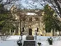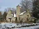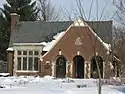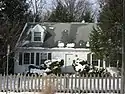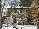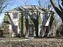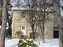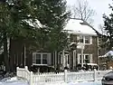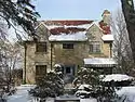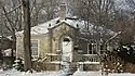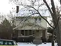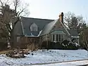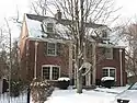As limestone workers and owners, the residents of Vinegar Hill naturally looked to limestone as the material for their own houses.[2]: 89 They used these materials to construct residences in a wide range of architectural styles, including American Craftsman, Neoclassical, and Art Deco. Inside, the houses were also ornate: many feature mantels and balusters of carven stone,[3] and the four houses built by Christopher Donato also include elaborate transoms and lintels. The most prominent houses in the neighborhood are the hilltop homes of the wealthy near the eastern end of the district; here may be found styles such as Tudor Revival and Georgian-influenced Colonial Revival.[2]: 90 Throughout the district, many houses are found in various forms of Colonial and English Revivals,[4] and multiple Spanish Colonial Revivals are among the most significant residences of the lower part of the hill. Among the books that have concentrated on the architecture of Vinegar Hill is Carol Shields' novel The Stone Diaries, in which the neighborhood is part of the setting for much of the novel.[2]: 91