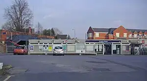 The station received a new station building in 1973 by British Rail, similarly treated to Wokingham and Sunningdale, from prefabricated concrete. The building is at the right of the photograph.