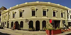 WD Moore & Co Warehouse complex is on Henry Street, Fremantle. It was unified in 1899 behind an ornamental stucco facade.[1] A store was established on the site by Samuel Moore in the 1840s. William Dalgety Moore later established a general merchant business there in 1862. The complex comprises a residence, warehouse, factory stable, offices and shop, built between 1862 and 1899, in addition to a three-storey backstore which was built at an unknown date, possibly as early as 1844.[1] The complex was listed on the Register of the National Estate in 1978.[2]