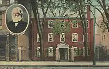 Their son, Henry Wadsworth Longfellow, was born nearby at the home of an aunt, Stephen's sister, on February 27, 1807. The home was a three-story Federal architecture-style home at the corner of Fore and Hancock Streets.[4] Young Longfellow did not move with his parents to the Wadsworth-Longfellow House until he was eight months old, but spent the next 35 years there.[5] The Longfellows added today's third story in 1815.