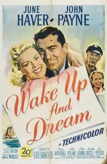 Wake Up and Dream is a 1946 American Technicolor musical fantasy film directed by Lloyd Bacon and starring June Haver, John Payne and Charlotte Greenwood. The film was released by 20th Century Fox and was based on the novel The Enchanted Voyage by Robert Nathan.[2]The Enchanted Voyage was the working title and the title of the film in the United Kingdom.