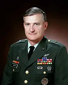 Major General Walter Harvey Yates Jr. (born November 6, 1941) is a retired United States Army officer who served as Deputy Commanding General of the Fifth United States Army. He is a native of Hattiesburg, Mississippi and 1963 graduate of The University of Southern Mississippi with a Bachelor of Science degree in Mathematics.[1][2] He also holds a Master of Science degree in Foreign Affairs from George Washington University. In addition, General Yates attended the DOD Joint Warfighting course and the Harvard program for National and International Securities Studies.