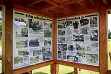 The Wanakena Historical Association developed a historical walking tour (2002) that includes two kiosks and six picture stations that display historical pictures and narratives on the history of the hamlet, logging, milling, railroad, and tourism. The walking tour is visited annually by schools, bus tours and tourists. The walking tour is free and open to the public from May 30 to at least Labor Day.