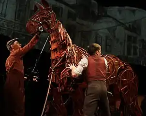 The production met with critical acclaim for its powerful use of life-size horse puppets designed by the Handspring Puppet Company of South Africa, winning an Olivier Award, Evening Standard Theatre Award and London Critics' Circle Theatre Award.[9] On 12 October 2009 the performance was seen by HM Queen Elizabeth II and her husband Prince Philip, marking their first private theatre visit in four years.[10]