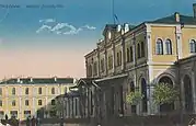 The Petersburg Train Station (Polish: Dworzec Petersburski) was built in 1863 as the final terminus of a new railroad linking Warsaw with Vilnius and St. Petersburg. The building itself was designed by Narcyz Zborzewski. As the line used Russian gauge while another major railway line operating in Warsaw at the time (namely the Warsaw–Vienna Railway) used Standard gauge, the two could not have been connected. To allow passengers travelling from Vienna to St. Petersburg easier access to both terminals a horse-drawn tramway line was opened soon after the railway line's completion, thus giving birth to Warsaw's tramway network. The original train station had been blown up by withdrawing Russian troops in 1915 during World War I.