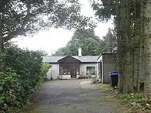 Wartle did not have a signal box, but photographs show that signals were present in later days. The single platform stood on the north-east side of the track and the line was single track. The station and station house were brick built in a 'U' shape with the front centre area covered at the front by a canopy. To the north-west of the station lay a level crossing. To the south-west was a goods yard with a goods shed approached from the south-east.[6] Several building stood in and close to the goods yard.[6] A loading dock lay parallel to one of the sidings.