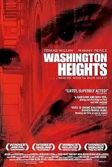 Washington Heights is a 2002 drama film directed by Alfredo De Villa and starring Manny Pérez, Tomas Milian, and Danny Hoch. It concerns a young comic book artist and his struggle to deal with his father's paralysis following a robbery of his shop in the Washington Heights neighborhood of New York City.[1][2][3]